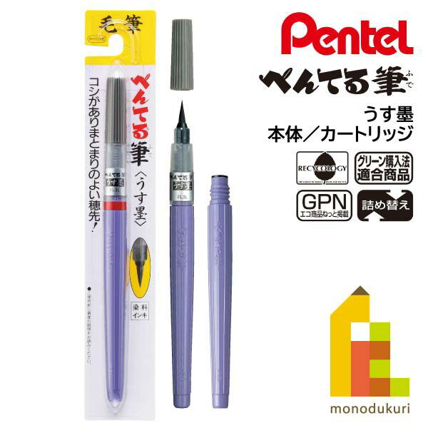 - 【ネコポス可】ぺんてる 筆ペン うす墨 中字(XFL3L)本体/カートリッジ(FR-N)