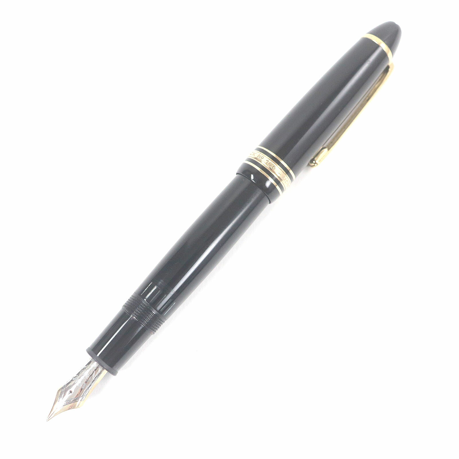 ■良品□MONTBLANC モンブラン マイスターシュテュック 146 ホワイトスター Fニブ キャップ式 万年筆 ブラック ゴールド ドイツ製 メンズ【中古】