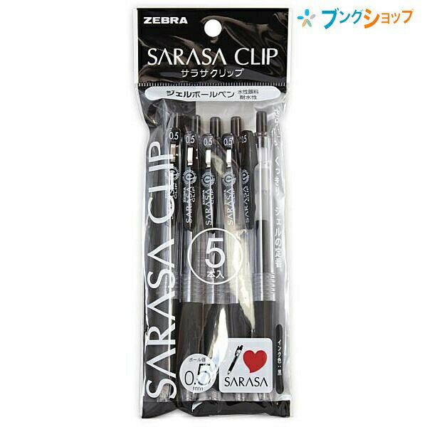 ■ゼブラ ゲルインクボールペン サラサクリップ05黒 5本入 さらさらな書き味 水性顔料インク 耐水性 耐光性 エアタイトシステム キャップレスでも乾きにくい