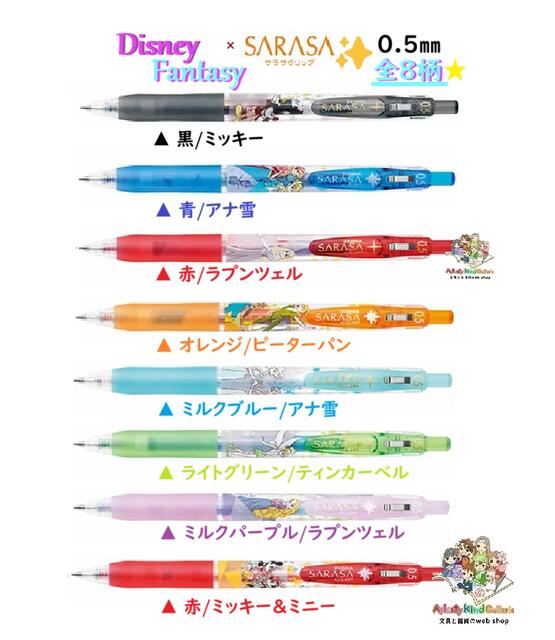 ■Disney SARASA ディズニー サラサクリップ ボールペン JJ29-DSF 【選択: 黒/ミッキー(BK) 青/ アナ雪(BL) 赤/ ラプンツェル(R1) オレンジ/ ピーターパン(OR) ミルクブルー/ アナ雪(MBL) ライトグリーン/ティンカーベル(LG) ミルクパープル (MPU) 赤 (R2) 】【3cmメール便OK