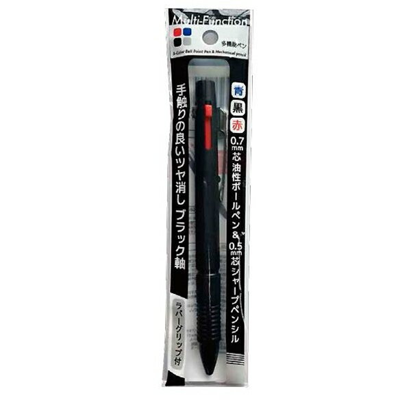 ○3色(黒・赤・青)のボールペンにシャープペンシルが加わった、多機能ペンです。ボールペンは油性インク、ボール径0.7mmです。シャープペンシルの芯の太さは、0.5mmです。手の負担をやわらげるラバーグリップ付きです。ペンケースに1本あると便利なアイテムです。□サイズ(約)・150×12×17mm□インクの色・黒、赤、青□材質・ABS、ラバー、スチール□用途・文房具 筆記用具 シャープペンシル シャ...