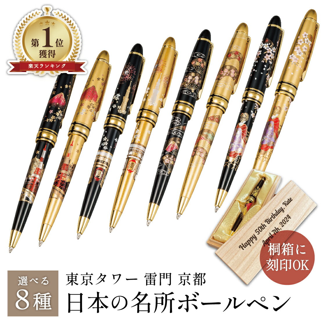 ■【ブラックフライデー本日P3倍+まとめ割15%OFF】【名入れ刻印可】 山中漆器 漆芸ボールペン日本の名所 選べる8種 (桐箱 退職祝 周年記念 金沢箔 工芸品 石川県 外国人 海外出張 お歳暮 土産 ギフト 海外発送可 プレゼント お祝 誕生日 浅草 雷門 東京タワー 京都)