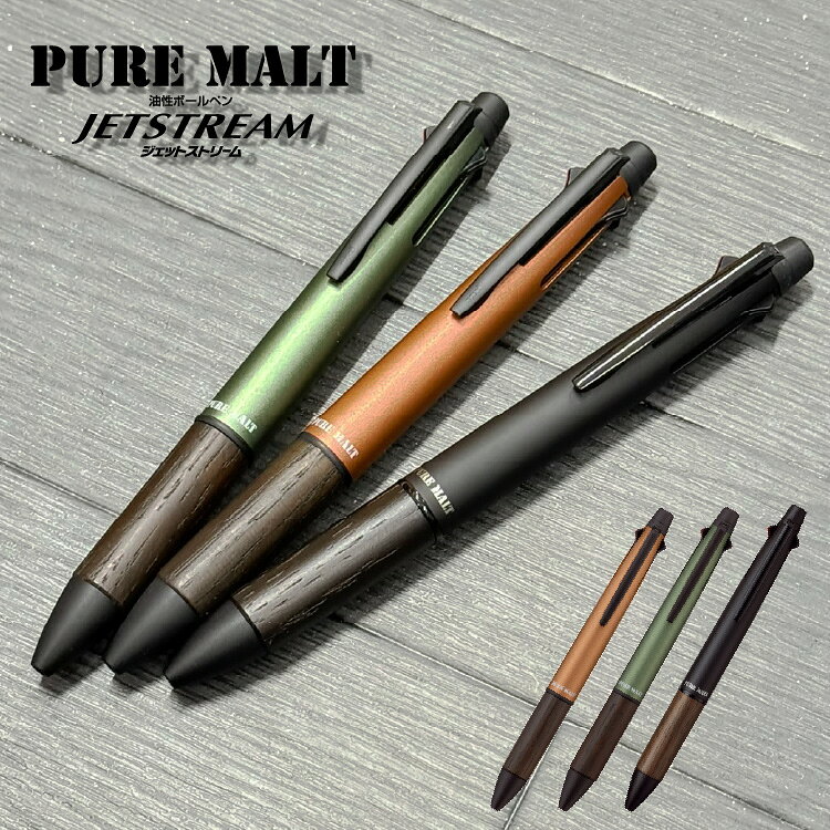 商品名 ジェットストリーム ピュアモルト 多機能4&1 インク 油性インキ 仕様 ●機 構:ノック式 ●軸仕上:木(ウイスキー熟成後の樽を再加工)、ABS樹脂+塗装 ●シャープ消しゴム:S ●サイズ:軸径φ13.7×厚さ18.5×全長148.7mm ●重 量:25.2g ●ジェットストリームインク搭載 ボールペン 替芯SXR-...