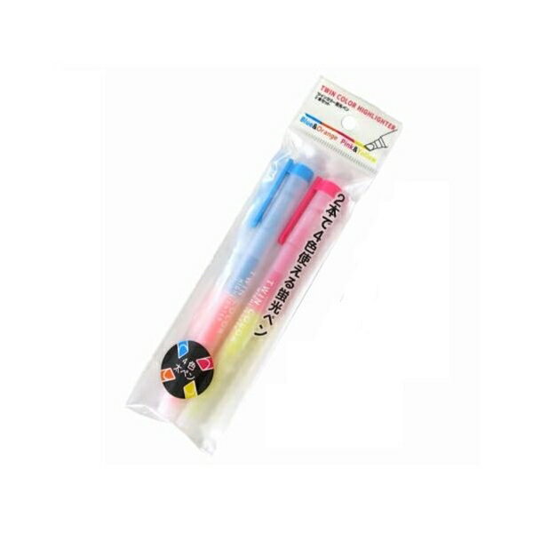 ■ツインカラー蛍光ペン 2本セット{ 文具 事務 筆記具 マーカー ギフト 誕生日 子ども会 施設 }[ 子供会 保育園 幼稚園 景品 イベント お祭り プレゼント 人気 ]【色柄指定不可】【不良対応不可】