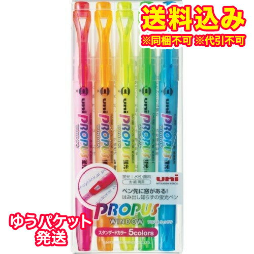 ■ゆうパケット)uni プロパス ウインドウ 蛍光ペン 5色