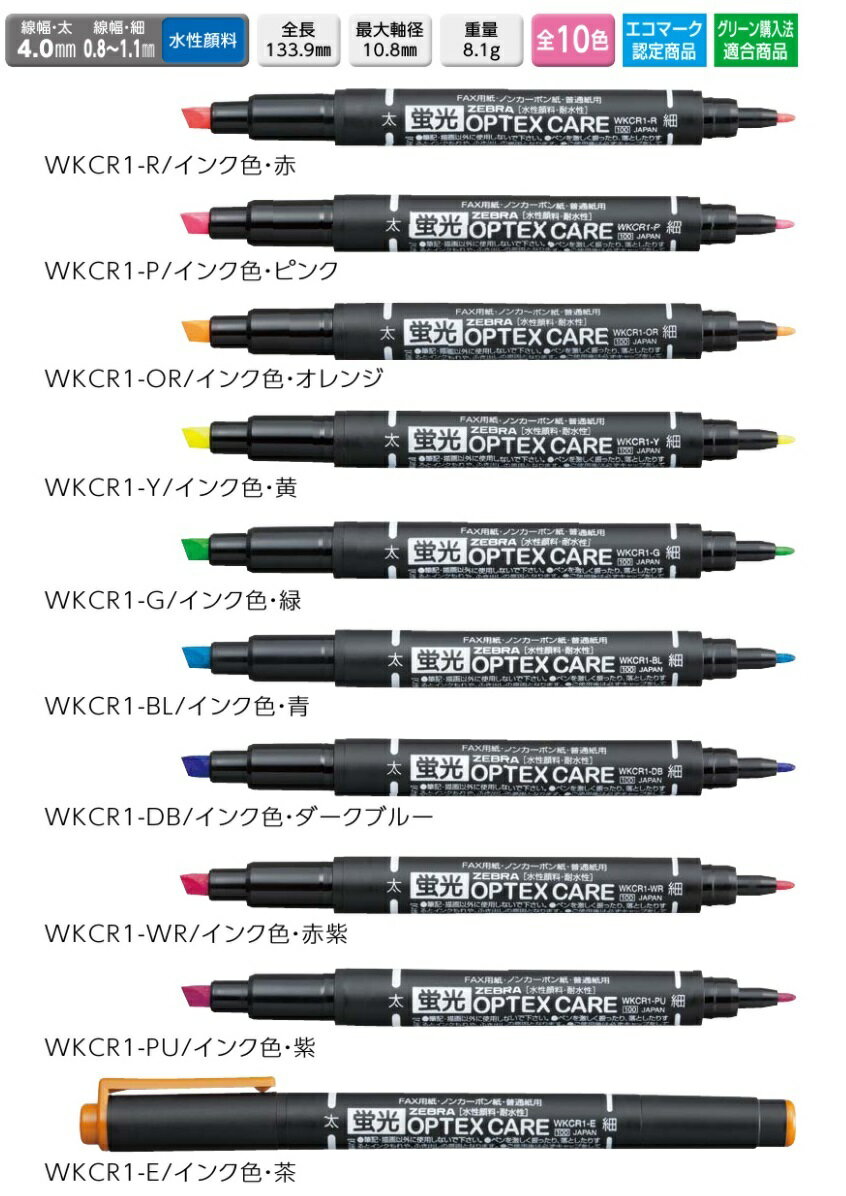 ■ゼブラ 蛍光ペン 蛍光オプテックス ケア WKCR1