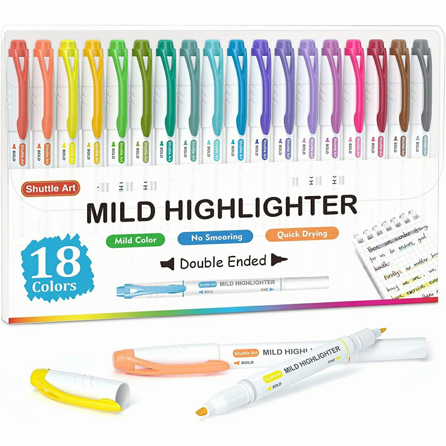 ■【送料無料】蛍光ペン ラインマーカー 18色セット 水性 パステルカラー ツイン 速乾 カラーペン 暗記用 教科書/カレンダー/手帳にマーキング アンダーライン 色塗り イラスト 子供 学生 学校 オフィス 家庭