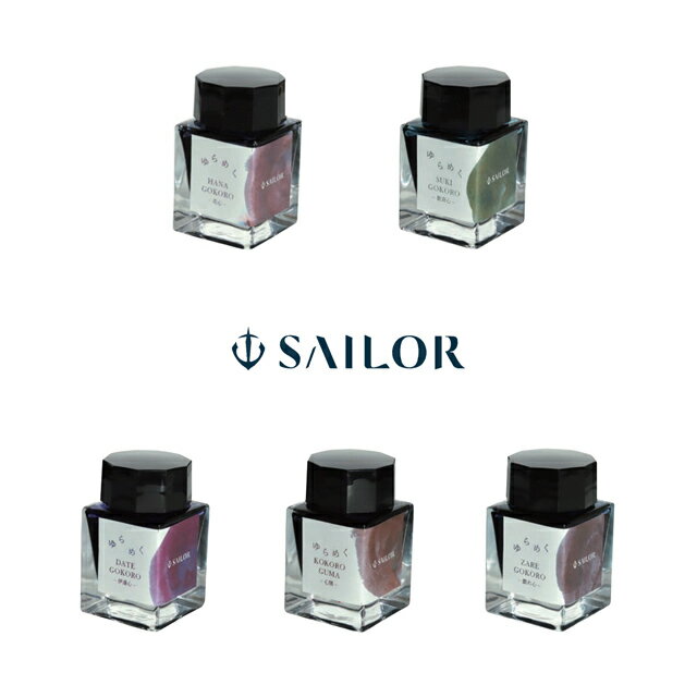 商品名 SAILOR(セーラー万年筆) 万年筆用ボトルインク ゆらめくインク 第2弾 20ml カラー(品番) ・花心(13-1530-201) ・数奇心(13-1530-202) ・伊達心(13-1530-203) ・心隈(13-1530-204) ・戯れ心(13-1530-205) サイズ ・本体サイズ:約H58×W34×D34mm ・本体重量:約94g ・パッケージサイズ:約H61×W37....