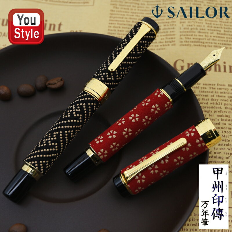 【ブランド】 セーラー SAILOR 【品 名】 甲州印傳 【種 類】 キャップ式万年筆 【カ ラ ー】 小桜(こざくら)レッドGT:10-3051-330 鞘形(さやがた)ブラックGT:10-3051-320 【仕 様】 蓋・胴:真鍮/甲州印傳巻き 大先:PMMA樹脂 金属部品:金メッキ仕上げ・IPゴールド仕上げ 【サ イ ズ】 長さ:約133mm(収納時) / 約160mm(筆記時) 軸...