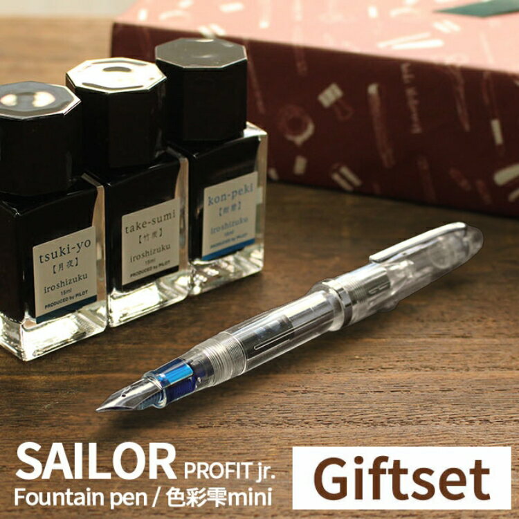 仕様商品名万年筆ギフトセット セーラープロフィットjr + パイロット色彩雫mini仕様・◆パイロット 万年筆インキ 色彩雫(いろしずく)mini 3色セット 15ml×3・一般書記用インキ・[セット](A)月夜,竹墨,紺碧,(B):朝顔,深海,山葡萄,(C)天色,冬柿,松露・[サイズ]:27mm×68mm,[容量]:15ml,[重量]:77g・------------------・◆セーラー プ...